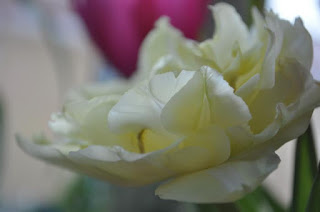 Det behövs så lite men likt de vita tulpanerna som liknar så molntussar befinner jag mig i en lite euforisk nykär känsla, dansar runt som på små moln tänk vad lite ljus och sol kan göra för kropp & själ.....